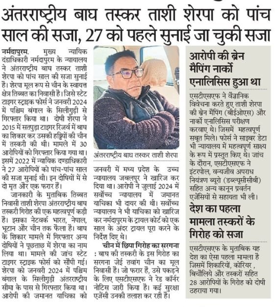 अंतरराष्ट्रीय बाघ तस्कर ताशी शेरपा को पांच साल की सजा, 27 को पहले सुनाई जा चुकी सजा
